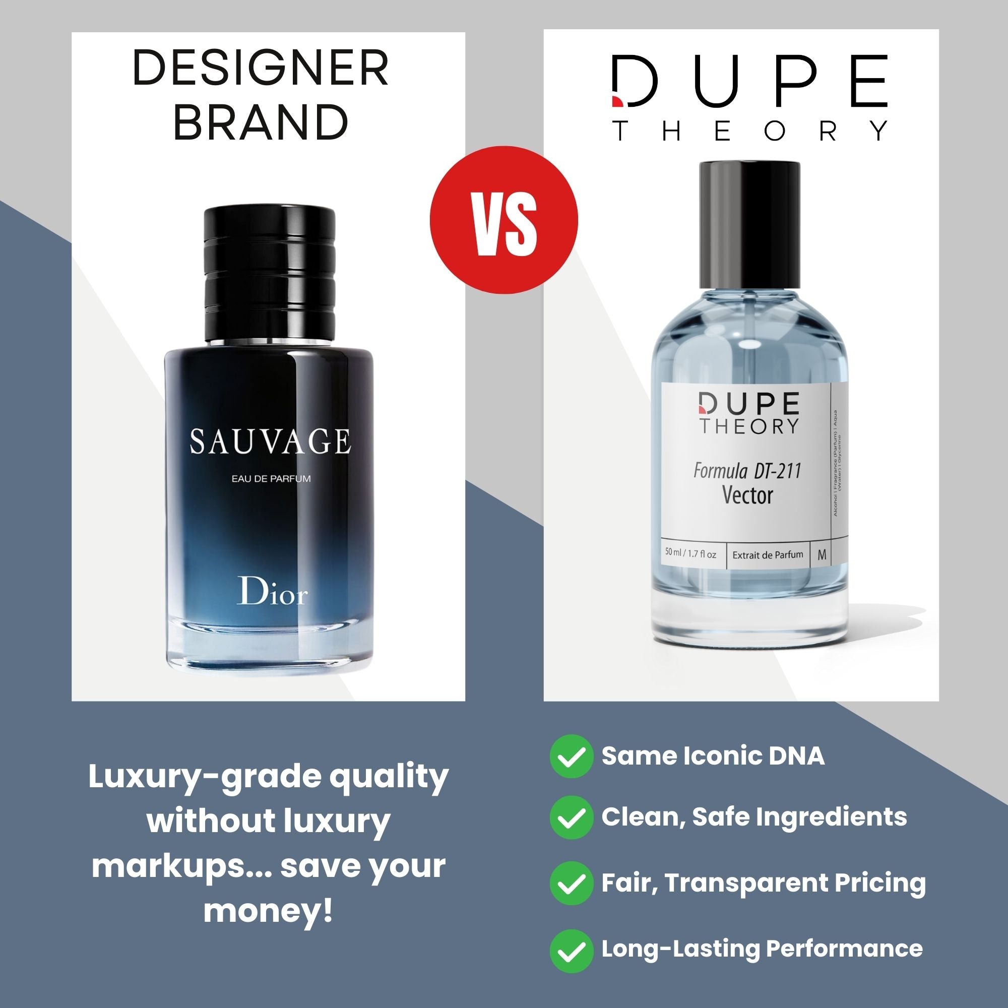 We do not claim our fragrances are identical to any original designer product. Dupe Theory complies with the Federal Trade Commission’s guidelines on comparative advertising and practices full transparency in all representations.