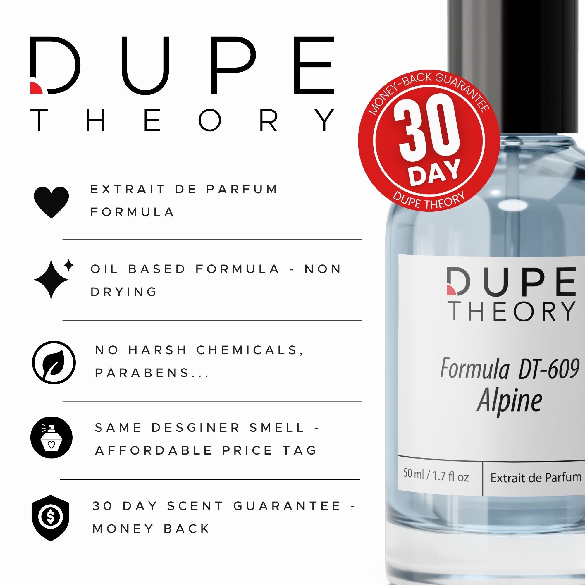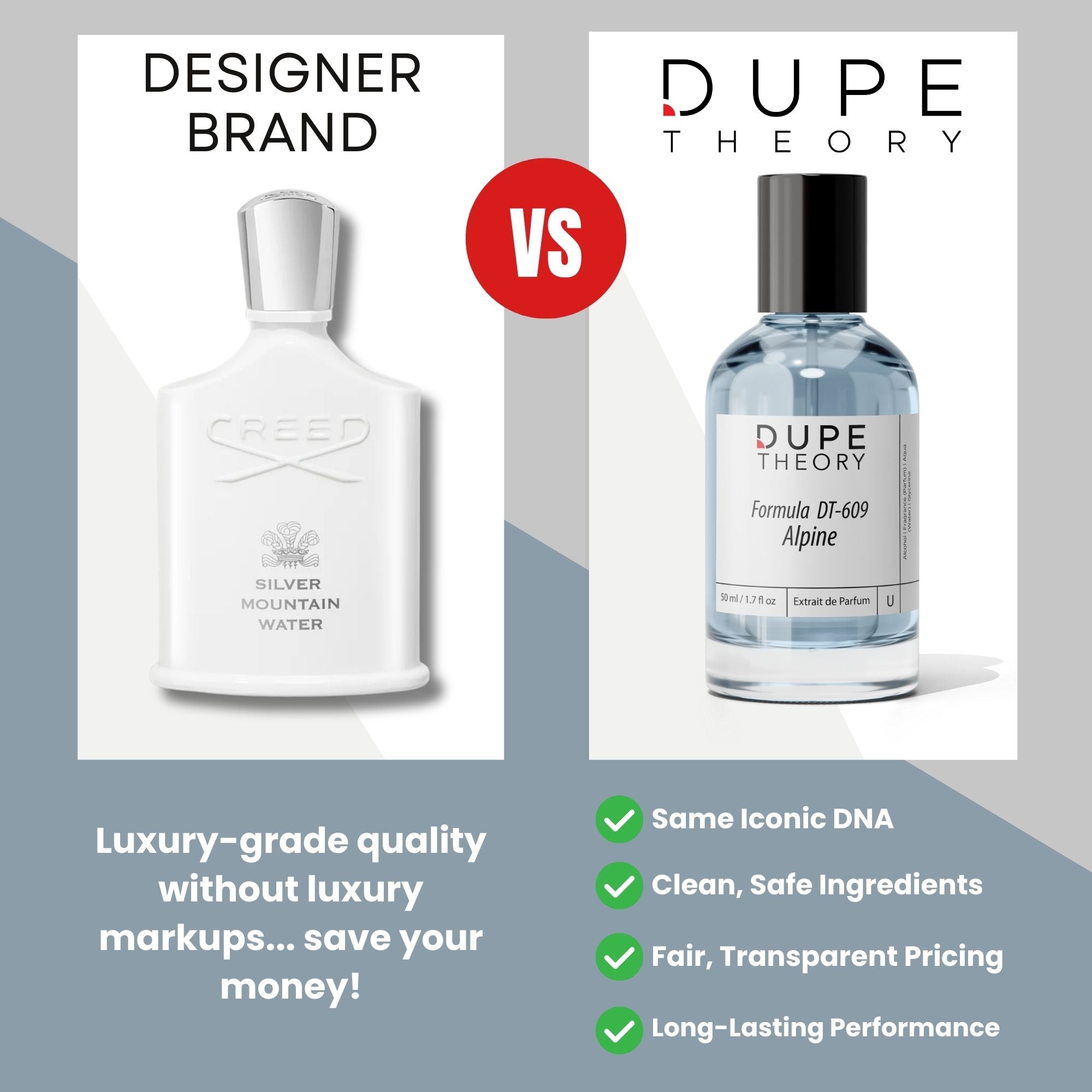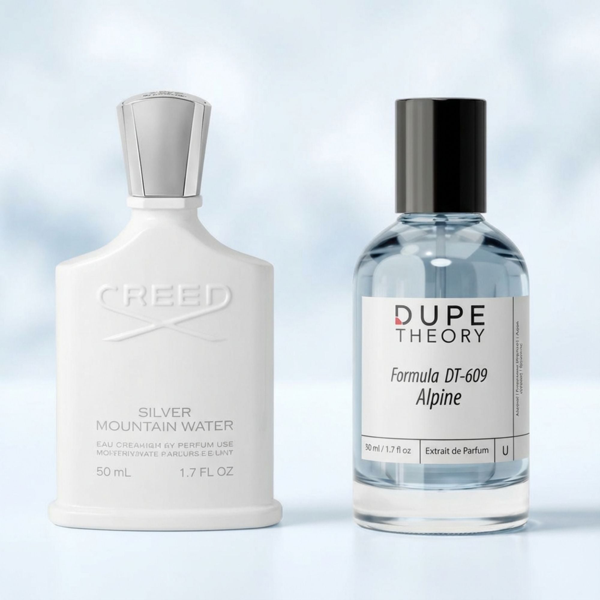 DT-609 Alpine is an Extrait de Parfum inspired by Creed Silver Mountain Water, engineered around a cold, mineral-fresh profile with citrus clarity, aromatic greens, and a clean musky dry-down.